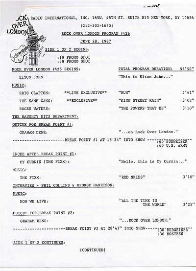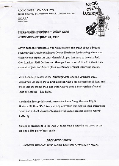 (LP) Rock over London #429 Radio Show from 19/07/1987 includes Dry Land