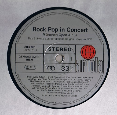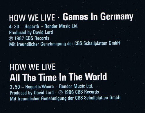 (2LP) Rock Pop in Concert Side 1, track 5 : Games in Germany [04:30] Side 1, track 6 : All the Time in the World [03:50] See Back Sleeve Credit / Label |