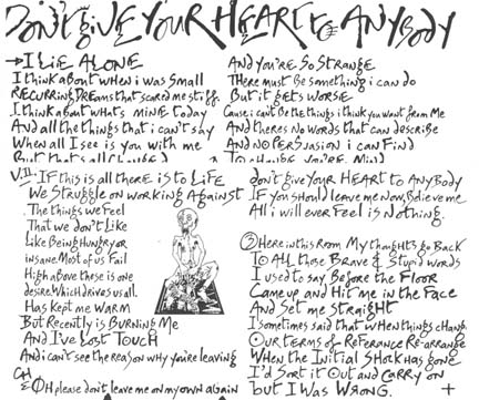 illustrated lyrics book, which contains a few more scribbles. (See it here).