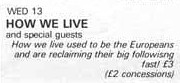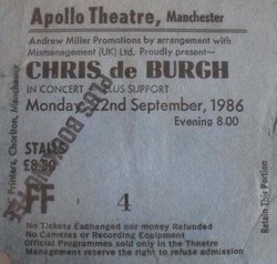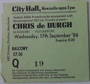 (Judith Mitchell, fan) "I remember How We Live more than most support acts. Hogarth wore a long black duster-type coat and sat a piano, with, I think a keyboard on top. I do remember him sitting and even standing on top of the piano at one stage! 'All the time in the world' was getting a bit of airplay on Gary Davies' Radio One lunchtime show, and when I heard the 'How We Live' tape, I recalled the catchy chorus straight away. This had me very perplexed as I knew I'd seen them somewhere, and a trawl through my tickets of past gigs had me wondering. I finally managed to figure out it was Chris De Burgh I'd seen with 'How We Live' - much to Hogarth's embarrassment! In 1991, I was backstage at the 'Holidays in Eden' show in Bradford, and asked Hogarth to sign a few tickets. I'd put the Chris De Burgh one in between, and when it turned up he went as white as his shirt!"