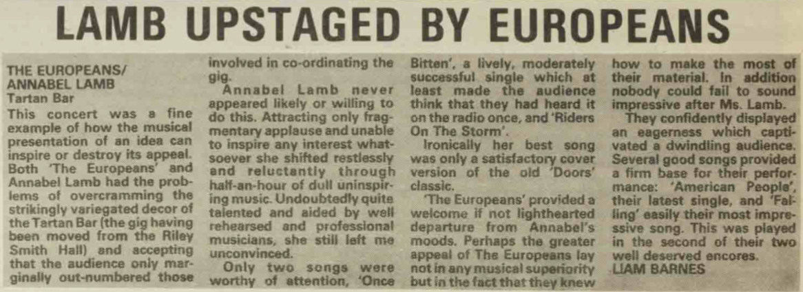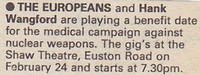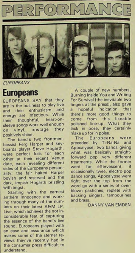 Thanks to Nick Atkins (early Europeans sound engineer), I have