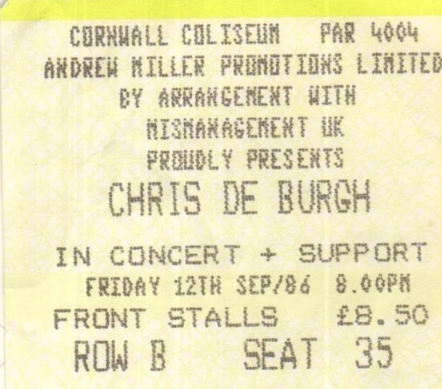 11/09/86 Colliseum, St Austell (first night supporting Chris de