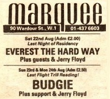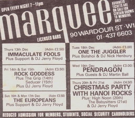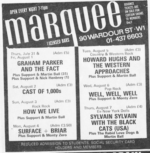 03/08/86 Marquee, London + 1000 Mexicans + Martin Ball /