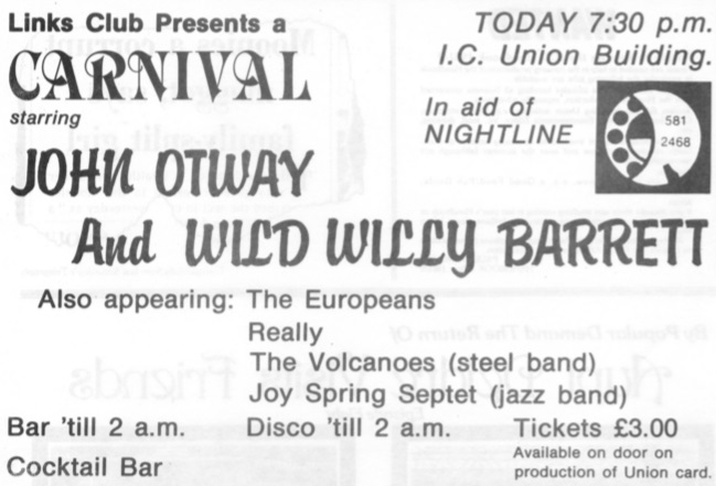 06/03/81 Queen Mary College, London (supporting John Otway)